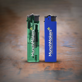 Partner with MunchMakers to create custom plastic lighters in transparent or solid color styles. At just $1.00 per lighter, build massive brand awareness through affordable promotional tools that cannabis smokers use and carry everywhere.