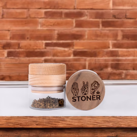 Natural wood aesthetic combined with clear glass creates beautiful display-worthy pieces customers showcase prominently. Custom branding transforms premium wooden lids into branded merchandise. At $36 with 50-unit minimum, innovative combo grinder-jars become accessible inventory for dispensaries offering sophisticated all-in-one solutions.