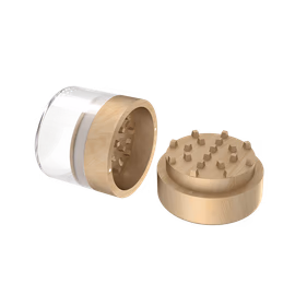 The wooden grinder lid features sharp teeth that process cannabis directly into the glass jar below—ground material falls straight into airtight storage without transferring between containers or losing precious kief. This integrated functionality saves time while preserving maximum potency through seamless grinding-to-storage workflow that separate accessories cannot match.