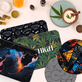 Custom branding transforms functional protection into premium branded merchandise. Full-surface printing showcases logos and artwork across generous mat dimensions, creating eye-catching designs customers display proudly on dabbing stations. At $6.50 with 500-unit minimum, accessible pricing enables profitable inventory for the booming concentrate demographic.